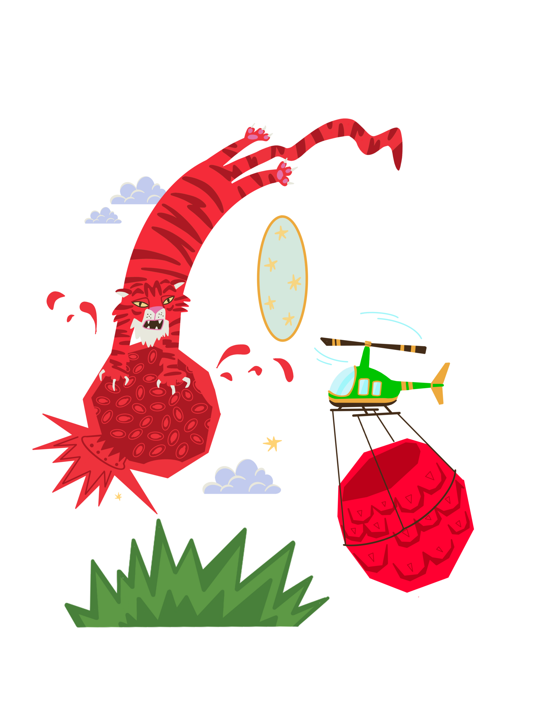 Он разогнался, сделал суперпрыжок и взлетел. Одной лапой схватился за большой гранат, другой — за сочную малину. Портал вот-вот закроется! «Киса» ловко сделал цирковой кульбит — как учил его брат, выступающий в цирке, — и вернул в королевство настоящий вкус граната и малины.